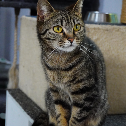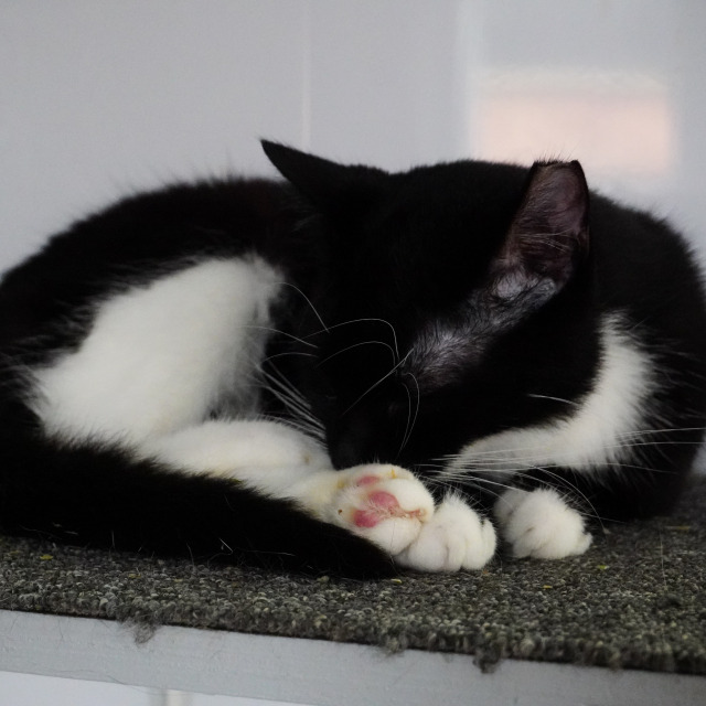 Thomas is a lovely young boy, when he came to us he was very timid and nervous, but over the weeks he has come around and now loves some attention and cuddles. He would do best in a quiet home with no other animals or kids.